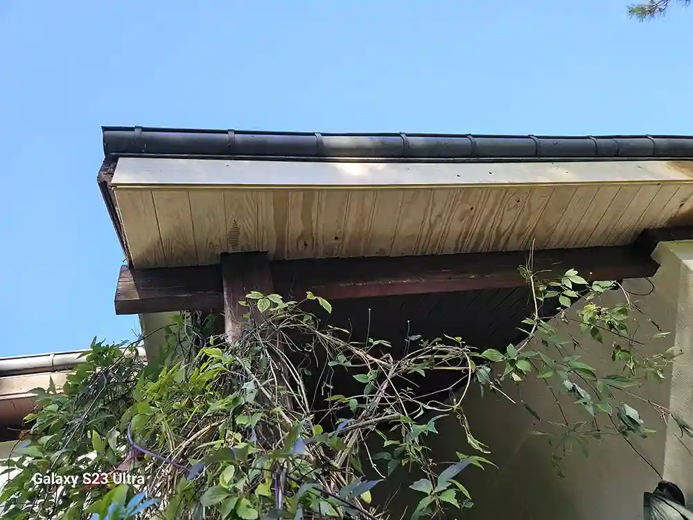 Les sous-faces en volige ont été remplacées par des panneaux neufs, choisis pour leur robustesse et leur résistance aux intempéries. Après la pose, nous avons appliqué une peinture de haute qualité, garantissant une finition esthétique et une protection durable contre les éléments.